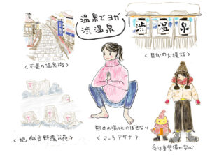 今回の旅行で驚いたのは、本当に外国人ばっかりだったということ。地獄谷野猿公苑でも、バスがバス停についたとたん、英語ガイドの腕章をした人が英語で「チケットをお持ちの方は後ろのドアから、お持ちでない方は前のドアから降りてください」と叫んで誘導を始めます。外国人観光客は京都とか奈良とか浅草とか、せいぜい箱根とかなのでは?というのは本当に古い考えで、最近の方たちは日本人より日本の穴場を知っているんですね。渋温泉の九番湯「大湯」で一緒になったロシア人女性は、「東京ドームでレディガガのコンサートに行ってあまりに感動的で泣いてしまった。そのあと、伝統的な日本のよさを味わいたくて渋温泉に来た。ロシアはマイナス30度だけど、ここの方が寒く感じるのは湿度のせいかしら。ロシアでは小さな子が2人いるので忙しくて、あまり寝れない。今回は子どもは置いてきたので、とてもリラックスできている」と言っていました。子どもが小さいとよく寝れないというのは全く共感できることで、ロシア人女性と心が通じ合えたようでうれしかったです。(2026.1.26-28)